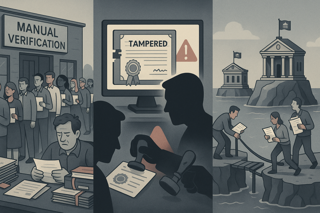 One of the biggest culprits? Manual verification systems. Whether it’s verifying identity, validating eligibility for welfare programs, or authenticating educational qualifications, most public service workflows rely on paper-based or PDF-based records that are easy to forge, hard to trace, and time-consuming to process. Tampered documents, lost files, and inter-departmental silos have made public recordkeeping both inefficient and untrustworthy.
